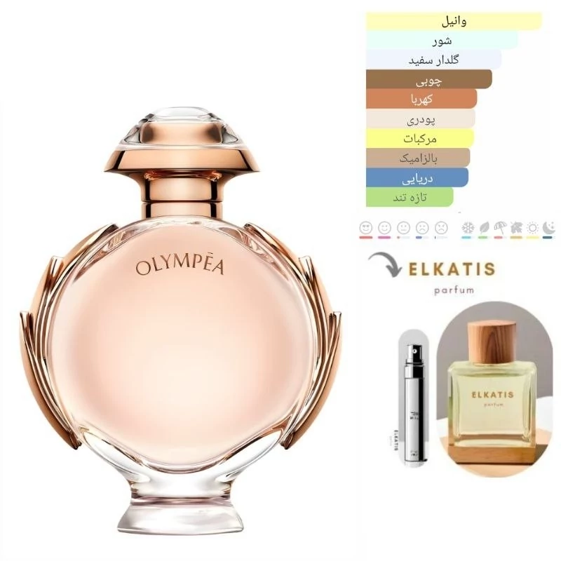 "Olympéa" عطری است پراز قدرت، اعتمادبهنفس و اغواگری. با شروعی مرکباتی و دریایی مثل ترنج در نسیمی از دریا، قلبی میگیرد پر از وانیل و نمک که مانند نغمهای از آزادی و دخترانگی مدرن است. و در پایان، چوبهای صمیمی و کهربایی، عطری آمیخته با شکوه را سردی آن میسازند. این عطر مثل یک نبرد ملکهای است که شیرینی و جلوه را با وقار و عمق ترکیب کرده است.