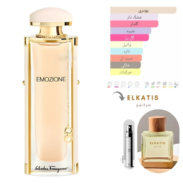«اموشونه»، نامش با خود حس را فریاد میزند — عطر احساسات. عطریست برای زنی باوقار، که به نرمی راه میرود و با نگاهش طوفان به پا میکند. شروعی روشن با ترنج و هلو، یادآور روزی آفتابی در باغی لطیف، و قلبی که با گل رز، گل صدتومانی و زنبق، روحی لطیف و آرام را در آغوش میگیرد. در پایان، ترکیبی از چرم سفید، مشک و نعناع هندی، حسی مخملی، گرم و ماندگار به جا میگذارد؛ چنان که گویی خاطرهای عاشقانه در هوای بعدازظهر گم شده است. --- 🔍 مشخصات نام لاتین: Salvatore Ferragamo Emozione برند: Salvatore Ferragamo سال تولید: 2015 نام عطار: Alberto Morillas جنسیت: زنانه گروه بویایی: گلی - چایپر فصل مناسب: بهار و پاییز ماندگاری: متوسط پخش بو: متوسط نت اولیه: ترنج، هلو، زنبق نت میانی: گل صدتومانی، رز، گل هلیوتروپ نت پایانی: چرم سفید، مشک، نعناع هندی