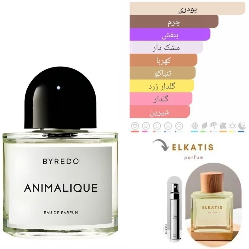 بایردو انیماتیک (Byredo Animalique) 🖤✨ این عطر در سال 2023 توسط برند لوکس سوئدی Byredo معرفی شد و بهسرعت توجه عاشقان رایحههای جسور و متفاوت را به خود جلب کرد. عطری است که مرز میان حیوانی بودن و لطافت شاعرانه را محو میکند؛ ترکیبی از خامی و اغواگری. نام لاتین: Byredo Animalique برند: Byredo سال تولید: 2023 جنسیت: یونیسکس (زنانه و مردانه) گروه بویایی: گلی – چرمی (Floral Leather) فصل مناسب: پاییز و زمستان ماندگاری: بالا پخش بو: قوی نتها: نت آغازین: لیمو، ترنج نت میانی: گل بنفشه، آفتابگردان، سوسن نت پایانی: عود، چرم، آمبر «Animalique» همچون رقصی شبانه در سایهروشنهای شهریست؛ جایی که نور نئون با تاریکی همآغوش میشود. رایحهای چرمی و عودی با لمسی گلی که هم وحشی و بیپرواست و هم لطیف و رویایی. عطری برای کسانی که میخواهند حضوری فراموشنشدنی داشته باشند. 🖤🔥 ---